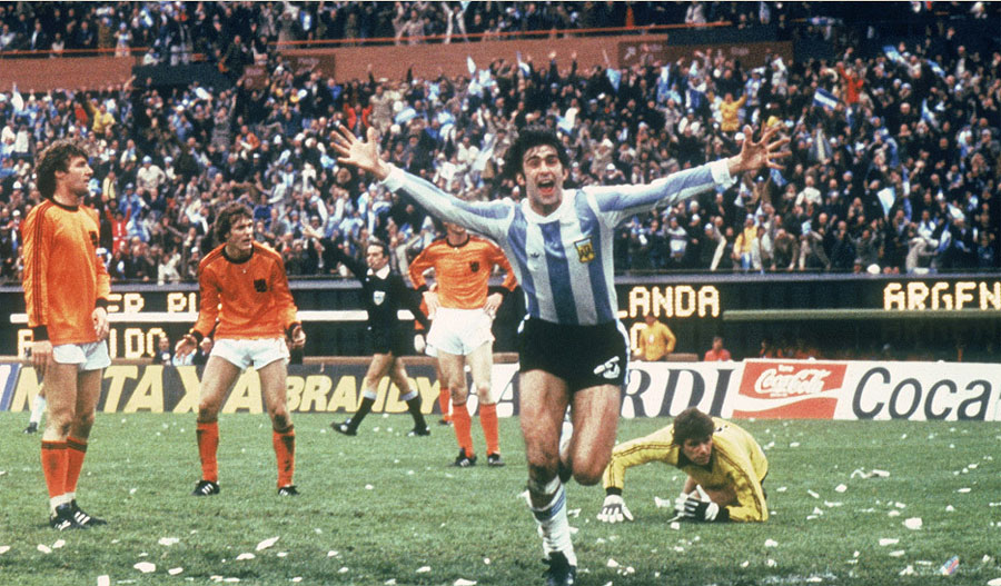 1978年,盡管荷蘭隊還是那么強大,但“全攻全守”在走下坡路,兩位劃時代的人物克魯伊夫和貝肯鮑爾退出各自國家隊,阿根廷采用1962年巴西隊的4-3-3陣型,在河床體育場3比1擊敗荷蘭隊奪冠。 阿根廷的成功得益于主教練梅諾蒂的指揮以及一批球星的崛起。鐵門菲洛爾、隊長帕薩雷拉、突破高手阿爾迪列斯。74年那屆阿根廷隊中只有肯佩斯和豪斯曼兩人入選78年陣容。當(dāng)然,最引人注目的是一頭長發(fā)的肯佩斯,他是這屆世界杯的英雄……