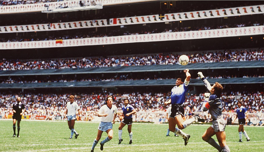 1986年世界杯原定在哥倫比亞舉辦,由于政局不穩(wěn)改由墨西哥承辦。雖然世界杯前遭遇大地震導(dǎo)致2萬(wàn)人喪生,但這并未影響墨西哥人舉辦一屆出色的世界杯。1986年世界杯屬于馬拉多納,本屆大賽的7場(chǎng)比賽中,阿根廷隊(duì)共打進(jìn)14個(gè)進(jìn)球,馬拉多納攻入5球、助攻5次,他帶領(lǐng)阿根廷隊(duì)在淘汰賽里先后擊敗烏拉圭、英格蘭、比利時(shí)和西德隊(duì)最終奪冠。重要的是,迭戈在與英格蘭的比賽里留下了“上帝之手”和“千里走單騎”,這是讓人永遠(yuǎn)無(wú)法忘記的經(jīng)典中的經(jīng)典。