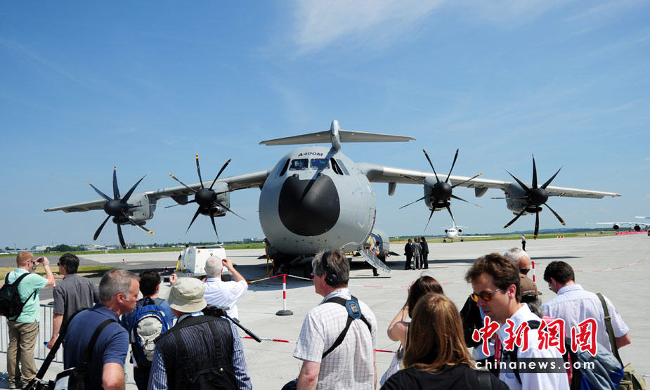 6月8日,德國柏林,一架空中客車A400M軍用運(yùn)輸機(jī)在2010年柏林國際航空展上試飛。