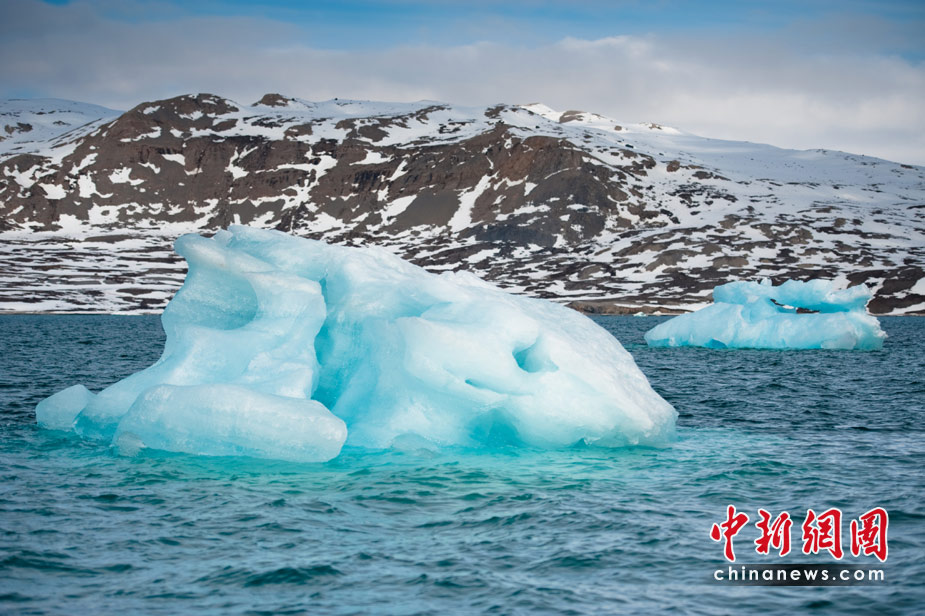 挪威的新奧勒松建有多個國家的北極考察站。圖為6月5日拍攝的挪威新奧勒松海岸的冰山。