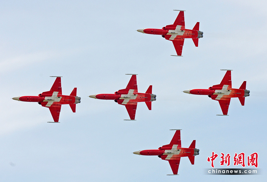 2010年柏林國際航空展于當(dāng)?shù)貢r(shí)間6月8日在德國柏林舍內(nèi)費(fèi)爾德機(jī)場(chǎng)開幕。9日,瑞士飛行表演隊(duì)在航展上演了精彩的飛行表演。圖片來源:中國新聞網(wǎng)