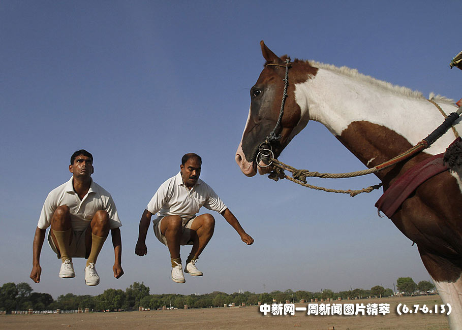周三(9日),在印度阿拉哈巴德,警察正在做練習,此時一匹馬正好經(jīng)過。