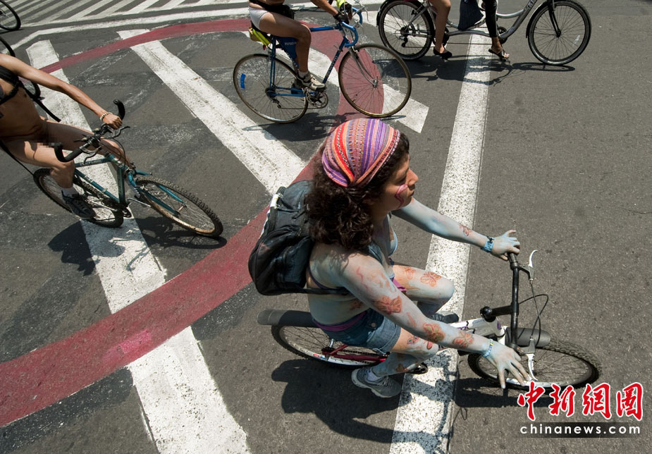 6月12日,在英國(guó)倫敦、墨西哥首都墨西哥城等地舉行了一年一度傳統(tǒng)的“裸體騎自行車大賽”。