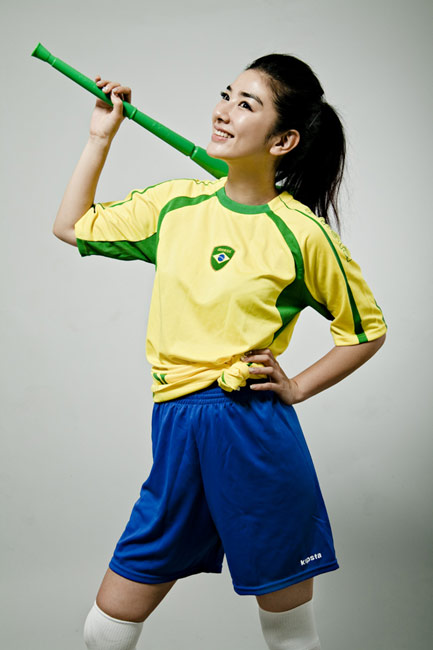 近日,黃奕身穿巴西隊(duì)球衣拍攝了一組世界杯足球?qū)懻,為南非世界杯助威喝彩?/p>