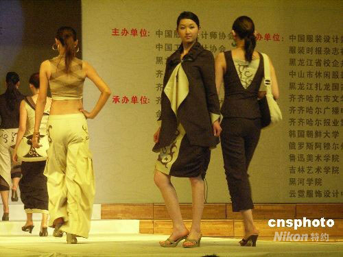 2008年9月29日,“人.鶴.自然”第二屆中國國際亞麻服裝設(shè)計大賽決賽在齊齊哈爾大學(xué)舉行,來自國內(nèi)外37位設(shè)計師的作品參加決賽。大賽旨在選拔、培養(yǎng)優(yōu)秀的亞麻服裝專業(yè)設(shè)計人才,提升消費者對亞麻服裝的審美與品牌意識。大賽主題為人.鶴.自然,以綠色設(shè)計為理念,倡導(dǎo)自然、健康、安全、舒適的生活方式。中新社發(fā) 王云龍 攝