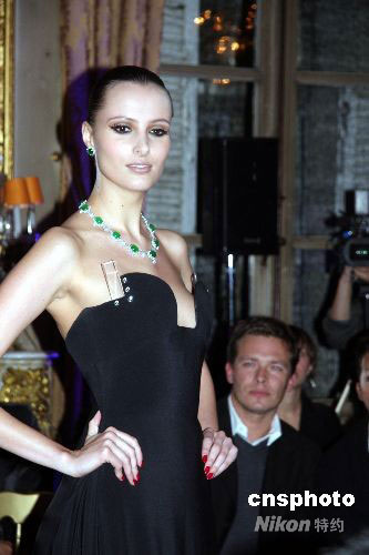 以“美麗永恒”為主題的中華風(fēng)尚珠寶藝術(shù)展十月二日晚在法國巴黎舉行。圖為模特兒在展示中國珠寶作品。中新社發(fā) 吳衛(wèi)中 攝