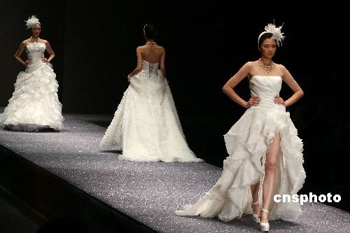 2008年11月7日,中國國際時(shí)裝周(2009春夏)舉行“名瑞杯”2008中國婚紗設(shè)計(jì)大賽(Famory Cup China Wedding Dress Design Contest 2008)。共有來自14個(gè)地區(qū)的25份稿件入圍了最后的決賽,角逐此次大賽的各個(gè)獎(jiǎng)項(xiàng)。經(jīng)典的白紗和今年非常流行的蕾絲面料是主角,選手們用了層疊,堆積的表現(xiàn)手法,使得并不新穎的面料有了新鮮的感覺,給人們造成不同的,特別的視覺效果。自由設(shè)計(jì)師吳小珍的作品《女人花》最終獲得金獎(jiǎng)。中新社發(fā) 魯谷 攝