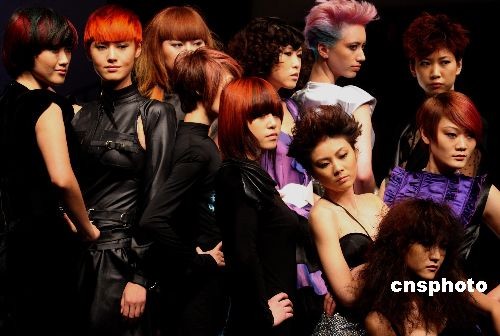 11月10日晚,在北京舉行了一場發(fā)型趨勢發(fā)布會上,模特展示了2009最新發(fā)型趨勢作品。中新社發(fā) 錢興強(qiáng) 攝