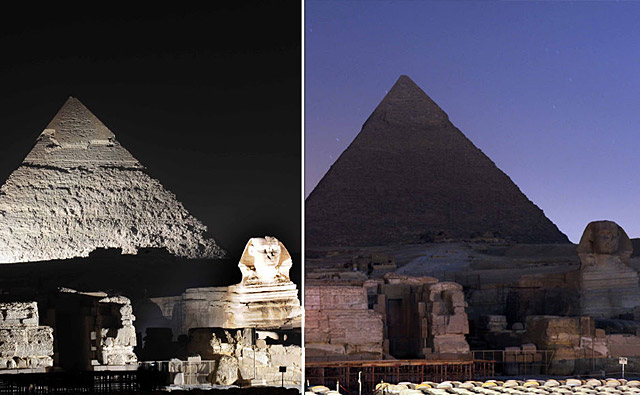埃及開羅:2009年3月28日,埃及吉薩金字塔群參加“地球1小時(shí)”活動(dòng)。