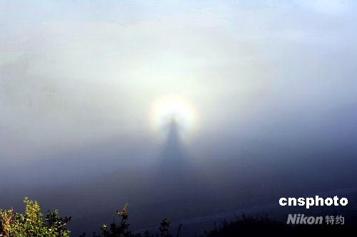 7月8日早晨,新疆喀納斯景區(qū)上空出現(xiàn)大片云霧,在陽光的直射下,出現(xiàn)了罕見的“佛光”奇觀?{斯景區(qū)位于新疆西北部,北與哈薩克斯坦、俄羅斯、蒙古交界。神秘的湖怪、令人費解的枯木長堤、暗藏水下的湖底森林、以及奇異壯觀的云!胺鸸狻笔切陆{斯景區(qū)最著名的“四大奇觀”。中新社發(fā) 康劍 攝