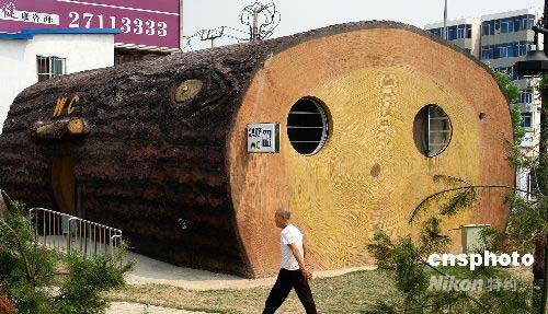 7月21日,天津新建成的長虹生態(tài)園內(nèi),造型酷似大樹的藝術(shù)公廁。據(jù)介紹,該“木頭”公所直徑5米、長10米,占地面積近100平方米,內(nèi)部為磚混結(jié)構(gòu),由人工雕繪制成。中新社發(fā) 展曉仁 攝