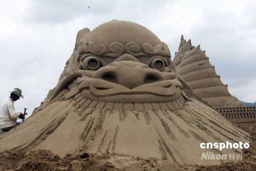 9月29日,第十屆“全球通”中國舟山國際沙雕節(jié)在浙江普陀朱家尖南沙開幕。主題為“世界海島奇觀”的沙雕公園面積達(dá)1萬平方米,由50余件大小不一的沙雕作品組成,分“海神波塞冬”、“神秘島”、“舟山特色島”4個(gè)部分。中新社發(fā) 趙雋 攝
