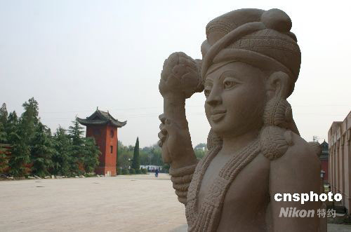 被譽(yù)為中印兩國“總理工程”的河南洛陽白馬寺印度佛殿,目前正在最后的裝修沖刺階段。近日,佛殿已經(jīng)初露芳容。佛殿占地3450平方米,2006年4月動工,2007年9月開始殿內(nèi)裝修。預(yù)計一個月后即可全部完工。中新社發(fā) 聽伊 攝