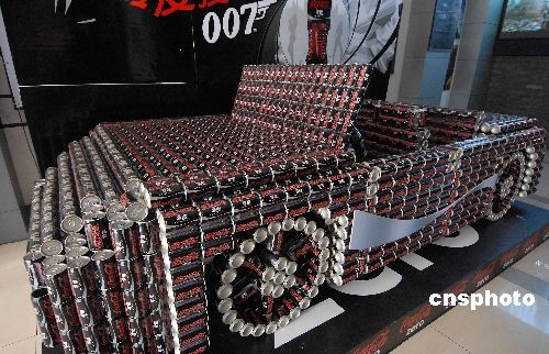 2008年11月5日,一輛由數(shù)百只飲料空易拉罐組成的“汽車”出現(xiàn)在杭州街頭,頗受市民關注。中新社發(fā) 引煒 攝