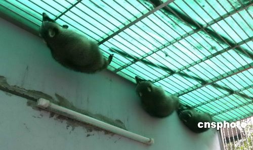 11月15日,3只食蟹浣熊在重慶鱷魚中心景區(qū)內(nèi)玩耍。據(jù)景區(qū)管理人員介紹,這些浣熊是11月初從南美引進(jìn)的,這些小家伙機(jī)靈溫和,喜歡在夜間活動(dòng)。中新社發(fā) 宋偉 攝