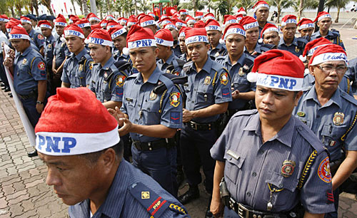 這項(xiàng)活動(dòng)當(dāng)天啟動(dòng)后,大約200名菲律賓警察將開始頭戴圣誕老人的帽子在商場(chǎng)等人流量大的地區(qū)執(zhí)勤,以使他們?cè)谑フQ節(jié)期間的巡邏能更加醒目,從而更加有效地防范犯罪活動(dòng)。