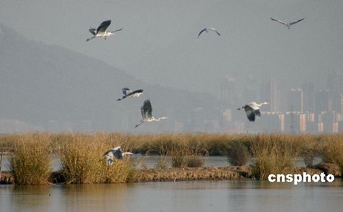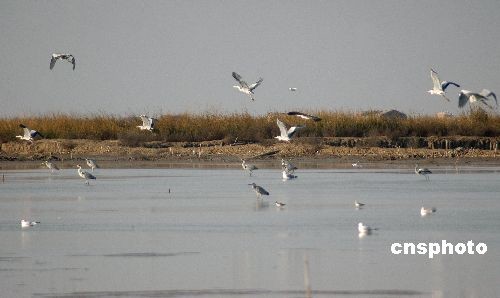 12月6日,在江蘇連云港市臨洪口沿海濕地,數(shù)千只灰鶴、鷺鳥、綠頭鴨、紅嘴鷗等候鳥來此越冬繁殖。它們或在天空中自由翱翔,或在水中盤旋覓食,場面甚是壯觀,沿海濕地變成了海鳥的樂園。目前,面積達(dá)116平方公里的臨洪濕地保護(hù)工作已經(jīng)啟動,連云港將把臨洪河口濕地打造成集濱海濕地、城市濕地、農(nóng)耕濕地、文化濕地于一身的城市中央濕地公園。中新社發(fā) 王春 攝