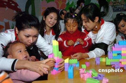 10月24日,“璽萌杯”第57屆世界小姐總決賽中國(guó)賽區(qū)參賽佳麗,來到北京豐臺(tái)區(qū)兒童福利院,把她們的笑容和愛心帶給這里的孩子們。大賽贊助商“璽萌”公司向福利院捐贈(zèng)了十萬(wàn)元資金。中新社發(fā) 樊建恩 攝