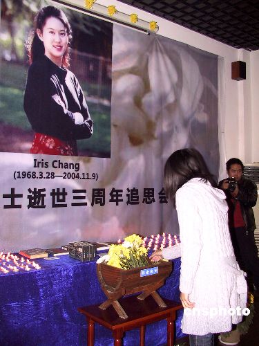 十一月九日,美國(guó)華裔女作家張純?nèi)缡攀廊苣。江蘇省社科院專家、南京高校歷史系教授、南京大屠殺幸存者后代、在寧就讀的大學(xué)生等社會(huì)各界人士,共聚南京民間抗日戰(zhàn)爭(zhēng)紀(jì)念館,在這里緬懷追思這位美麗堅(jiān)強(qiáng)的女性。中新社發(fā) 朱曉穎 攝