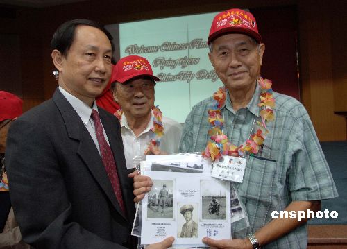 “2007美國華裔飛虎隊(duì)老兵及家眷回鄉(xiāng)訪問團(tuán)”11月15日抵粵參觀訪問。訪問團(tuán)將在廣州、江門、新會、臺山等地進(jìn)行省親活動(dòng),并向廣東華僑博物館等廣東省三家博物館單位捐贈(zèng)華裔飛虎隊(duì)老兵文物,八十三歲的老兵阮福志向省華僑博物館捐贈(zèng)珍貴的歷史照片。中新社發(fā) 梁永強(qiáng) 攝