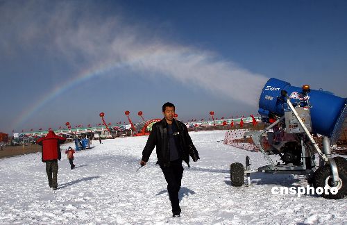十一月十七日,新疆烏魯木齊某滑雪場工作人員正在操作造雪機(jī),對即將投入使用的雪道進(jìn)行人工造雪。當(dāng)天,2007新疆冬季冰雪旅游啟動儀式在該滑雪場舉行。新疆冬季漫長,冰雪資源極為豐富,截至目前已建成二百一十多家滑雪場和冰雪娛樂點。中新社發(fā) 劉新 攝