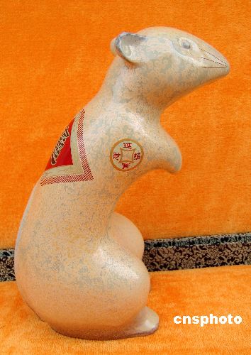 2008年是中國傳統(tǒng)的鼠年,老鼠在中國大部分地區(qū)被認為是財神的象征。江西景德鎮(zhèn)的陶瓷藝術(shù)家們設(shè)計出各種寓意深刻、造型可愛的鼠年生肖瓷,目前這些生肖瓷已在各商場銷售,受到市民歡迎。中新社發(fā) 石衛(wèi)明 攝