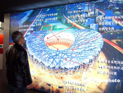 12月5日, 第十四屆首都城市規(guī)劃建筑設(shè)計(jì)方案匯報(bào)展-奧運(yùn)工程貫徹落實(shí)“三大理念成果”展吸引了眾多的北京市民前來(lái)參觀。該展覽重點(diǎn)展示了奧運(yùn)工程建設(shè),特別是奧運(yùn)場(chǎng)館建設(shè)中體現(xiàn)“綠色奧運(yùn)、科技奧運(yùn)、人文奧運(yùn)”三大理念的規(guī)劃設(shè)計(jì)。據(jù)悉,在奧運(yùn)場(chǎng)館建設(shè)中,至今已有625個(gè)集中體現(xiàn)三大理念的優(yōu)秀項(xiàng)目隨工程同步進(jìn)行,工作進(jìn)展順利并且顯示了實(shí)施效果。中新社發(fā) 玉龍 攝