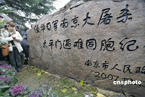 12月12日上午,侵華日軍南京大屠殺太平門遇難同胞紀念碑揭碑。這是南京市在全市建立的第19座南京大屠殺遇難同胞叢葬地紀念碑。南京市相關部門領導、日本“銘心會”訪華團團長松岡環(huán)女士及全體團員、旅日華僑中日友好促進會秘書長林伯耀先生以及群眾代表、中外媒體等參加了揭碑儀式。中新社發(fā) 祁恩芝 攝