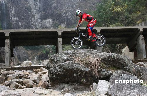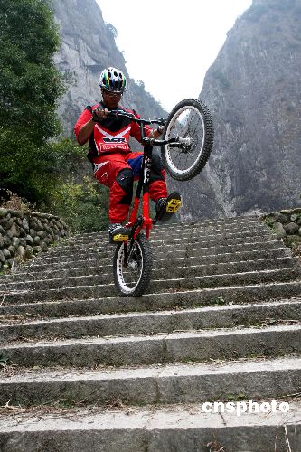 12月18日,創(chuàng)造了自行車攀登高樓吉尼斯世界新紀錄的“溫州小子”張金成,為即將舉行的“金茂巔峰對決 攜手共迎奧運——2008金茂大廈國際自行車攀樓挑戰(zhàn)賽”進行各式各樣的體能及技巧訓練。此次挑戰(zhàn)張金成的是來自哥倫比亞運動員加維爾·薩帕塔、安道爾運動員夏維·卡薩斯,張金成對即將到來的“巔峰對決”感言:“目前最要緊的是心態(tài)要調整好,2008一定成功!”中新社發(fā) 陳昌其 攝
