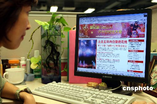 十二月二十一日,北京煙花爆竹安全管理網(wǎng)絡(luò)宣傳平臺正式開通。這是北京首次采用網(wǎng)絡(luò)進行相關(guān)煙花爆竹安全管理的宣傳。市民可通過此平臺查詢煙花爆竹銷售許可證辦理、銷售網(wǎng)點分布、煙花爆竹品種和價格等。中新社發(fā) 任海霞 攝