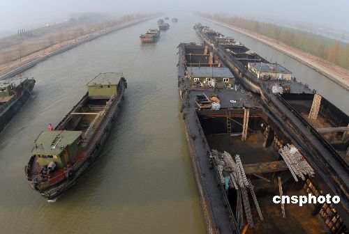 12月22日,上百艘船只開始過閘。當日,被譽為“江北第一閘”的京杭運河山東臺兒莊船閘汽笛爭鳴,百舸爭渡上演“過閘大戲”。由于連日濃霧,能見度不足20米,萬年船閘和臺兒莊船閘全線停止放船,上百艘船只滯留在航段內(nèi)。中新社發(fā) 高啟民 攝