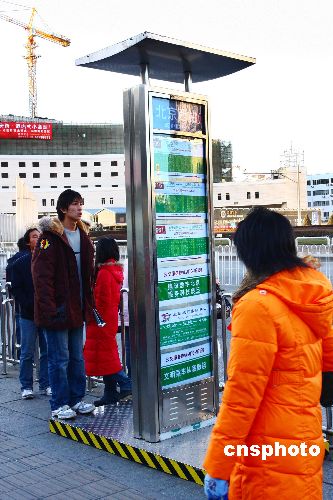 12月30日,北京西站北廣場的公交站牌換了“新面孔”。這種新“上崗”的太陽能公交站牌頭頂一塊酷似“帽子”的長方形太陽能采集板,白天吸收太陽能,晚上照亮站牌。中新社發(fā) 鄭雄增 攝