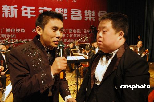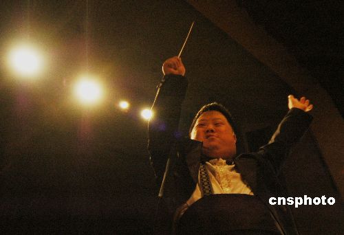 2008元旦之夜,《讓世界充滿愛》——“奇才指揮家”舟舟傾情指揮的大型新年交響音樂會在安徽巢湖舉行。委婉動人的音樂令在場上千人領略了舟舟的指揮風采,感受了交響樂的魅力,給步入新年的巢湖市民帶來了無數激情、夢想與歡樂。中新社發(fā) 徐振華 攝