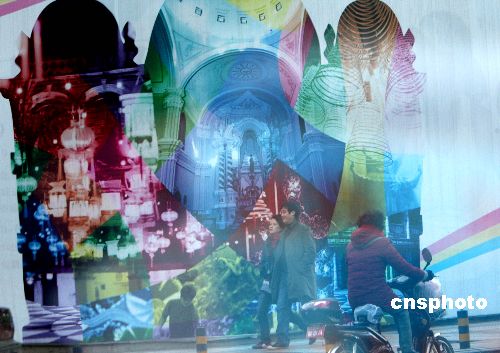 2008年新年伊始,北京市中心街頭矗立起巨大的“感受澳門(mén)”宣傳圖,讓民眾在隆冬時(shí)節(jié)了解澳門(mén)文化遺產(chǎn)、感受“南國(guó)”春光明媚、五彩繽紛的景象。中新社發(fā) 趙振清 攝