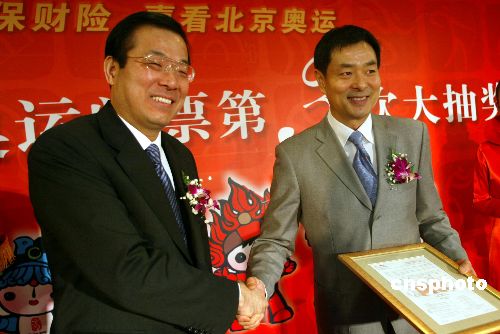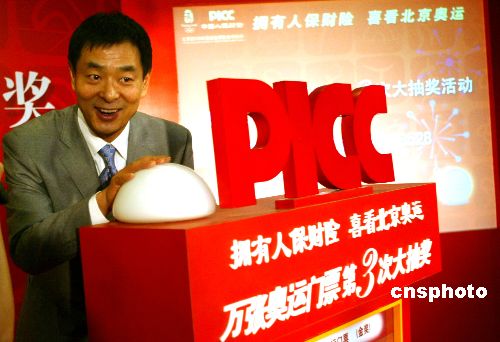 一月四日,著名表演藝術(shù)家濮存昕受邀為“擁有人保財(cái)險(xiǎn),喜看北京奧運(yùn)——萬張奧運(yùn)門票大抽獎(jiǎng)”活動(dòng)進(jìn)行第三次抽獎(jiǎng)。在活動(dòng)上,濮存昕被北京2008年奧運(yùn)會(huì)保險(xiǎn)合作伙伴中國(guó)人保財(cái)險(xiǎn)聘為公司奧運(yùn)形象大使。他高興地表示,自己已經(jīng)提出申請(qǐng)成為北京殘奧會(huì)志愿者, 希望參與更多的社會(huì)公益事業(yè)。中新社發(fā) 楊可佳 攝