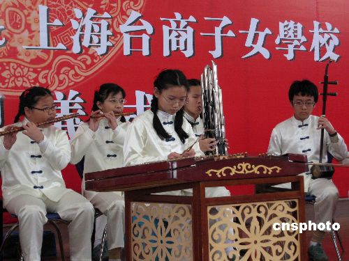 圖為上海臺商子女學(xué)校的學(xué)生在表演民族器樂。