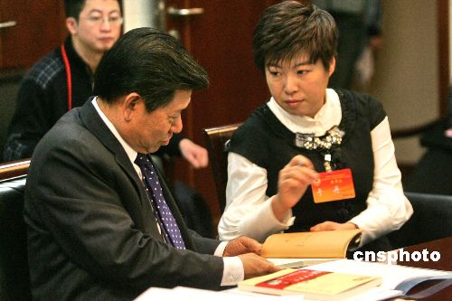 1月21日,北京市新一屆政協(xié)委員于丹與北京市政協(xié)主席陽安江在文藝界別小組討論會上討論問題。于丹是北京師范大學(xué)藝術(shù)與傳媒學(xué)院副教授,因2006年“十一”黃金假日在央視“百家講壇”連續(xù)七天播出專題講座“于丹《論語》心得”而被人們所熟知。中新社發(fā) 杜燕 攝
