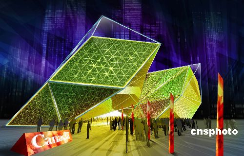 一月二十二日,加拿大政府在上海正式與中方簽約,參展二0一0年上海世博會,并同步公布加拿大館創(chuàng)意設(shè)計方案。上海世博會加拿大館的主題為“充滿生機的宜居住城市:包容性、可持續(xù)發(fā)展與創(chuàng)造性”。該館位于黃浦江東側(cè)的C片區(qū),占地六千平方米。針對參展上海世博會,加拿大政府的總預(yù)算將達四千五百萬加元。效果圖上的加拿大館宛如“綠寶石”。中新社發(fā) 世博局 供圖