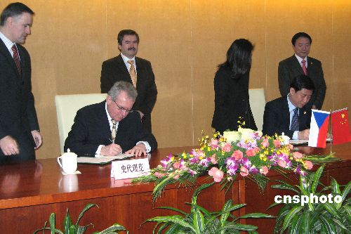 一月二十三日,捷克政府在上海與中方簽署2010年上海世博會參展合同。捷克官方同時公布其參展上海世博會的展示主題為“文明的果實”。上海世博會捷克展館位于世博園C片區(qū)。該國政府將向中方租用2000平方米的租賃館,營造包括一處人工瀑布景觀在內(nèi)的時尚展區(qū)。捷方表示,預(yù)計在上海世博會舉辦期間,捷克展館每小時有望吸引三千五百名游客。此外,捷克首都布拉格還將參與上海世博會“城市最佳實踐區(qū)”的案例申報。中新社發(fā) 許曉青 攝