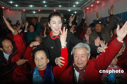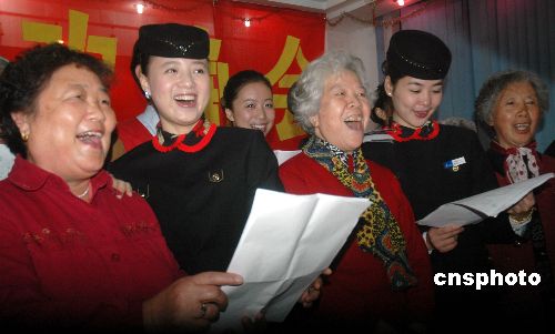 2008年1月24日,位于?谑械暮D峡鞓废﹃柧蠢蠄@舉辦“敬老愛老迎春聯(lián)歡晚會”,來自全國各地在該園休閑過冬的150多名“候鳥老人”與海南航空的20多名乘務員歡聚一堂,互送新年禮物和互動表演文藝節(jié)目,共同歡度了一個難忘的夜晚。中新社發(fā) 善平 攝
