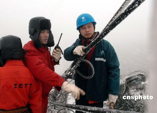 圖:浙江省冰凍嚴(yán)重 送變電職工搶修超高壓線