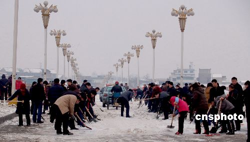圖:湖南邵陽市全體軍民奮戰(zhàn)在抗冰救災(zāi)第一線鏟冰除雪