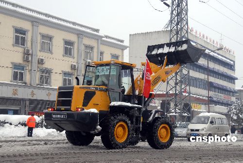 1月30日,連日的暴雪致使省城道路上堆積了大量的積雪,由于氣溫低,道路結(jié)冰,給安徽合肥交通帶來了很大的影響,為了使道路早日暢通,方便車輛和行人的出行,全市廣大干群、環(huán)衛(wèi)工人和大量市民紛紛走上街頭義務(wù)鏟雪,還有企業(yè)和個人把自己用于銷售的挖掘機(jī)和推土車改裝成鏟雪車開上街頭,義務(wù)幫助鏟雪。據(jù)悉,到目前為止,瑤海區(qū)境內(nèi)參加義務(wù)鏟雪的工程機(jī)械車輛共有9輛。中新社發(fā) 解琛 攝