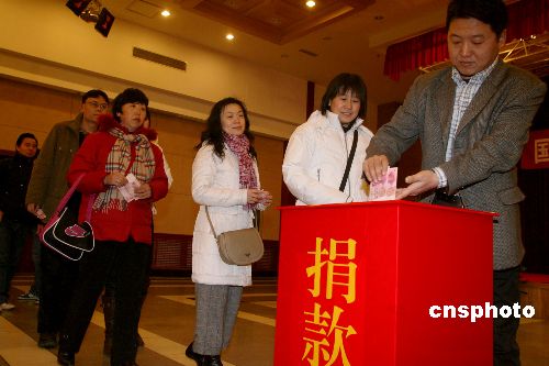 五十年一遇的罕見(jiàn)雪災(zāi)仍舊肆虐著中國(guó)南部的一些省份,為了幫助受災(zāi)地區(qū)群眾抗災(zāi),二月四日,國(guó)務(wù)院僑辦組織自愿捐款活動(dòng),僑辦主任李海峰,副主任許又聲、馬儒沛、任啟亮,中國(guó)海外交流協(xié)會(huì)副會(huì)長(zhǎng)林文肯及僑辦機(jī)關(guān)和直屬單位的領(lǐng)導(dǎo)干部,將一份份“愛(ài)心”投入捐款箱中。據(jù)統(tǒng)計(jì),此次捐款活動(dòng)共收到干部捐款和下屬單位捐款二百零六萬(wàn)二千六百三十元人民幣。中新社發(fā) 張勤 攝