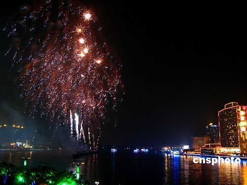 2月7日晚20點30分至21點,2008年廣州市春節(jié)焰火晚會在珠江河段白鵝潭江面舉行。廣州市民及留守外來工一早就前往白鵝潭及珠江岸邊等候欣賞煙花美景。據了解,本次焰火晚會首次采用了全新的情景劇式音樂敘事燃放模式,采用高科技手段,突出嶺南文化。中新社發(fā) 呂明/吳呂明 攝