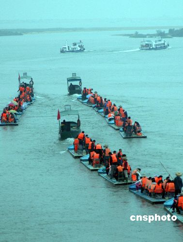 2008年2月9日,大批游客蜂擁登船游覽博鰲。當(dāng)天,海南連續(xù)半個(gè)多月的陰霾寒冷天氣有所改觀,博鰲迎來(lái)春節(jié)黃金周旅游高峰。中新社發(fā) 蒙鐘德 攝