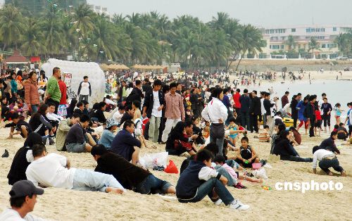 2月10日,春節(jié)假期已過半,海南三亞各大景區(qū)游人仍絡繹不絕,場面十分火爆。圖為人山人海的三亞大東海景區(qū)。中新社發(fā) 尹海明 攝