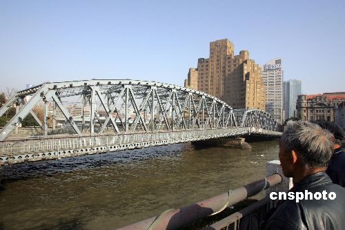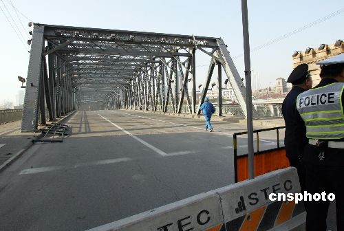 3月1日零時,上海外白渡橋準(zhǔn)時封閉交通,它的整修工程也將隨之展開,擇日整體移入工廠進(jìn)行大修。中新社發(fā) 湯彥俊 攝