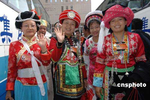 三月二日,云南少數(shù)民族代表盛裝抵達北京,出席將于五日開幕的第十一屆全國人大一次會議。中新社發(fā) 王東明 攝