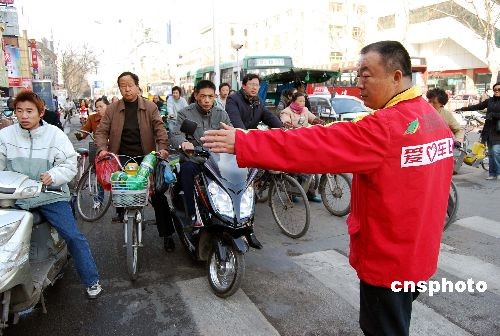 3月4日,一名交巡警對“愛心車隊”的哥進行“崗前”培訓。當日,江蘇省鎮(zhèn)江市“愛心車隊”的哥的姐,來到該市京口區(qū)道口“客串”交巡警。他們通過崗位執(zhí)勤、發(fā)放宣傳資料等形式,用實實在在的角色轉(zhuǎn)換與體驗,進一步增強維護道路交通安全和良好交通秩序的自覺性。中新社發(fā) 汪永祥 攝
